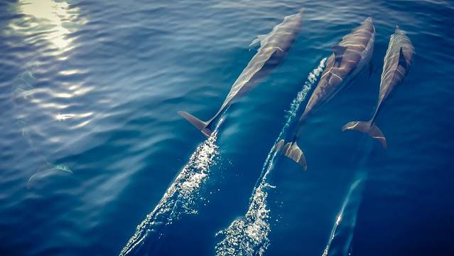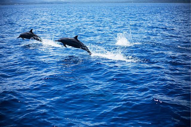 看到小海豚在大海里自由的徜徉,心情无比舒畅~