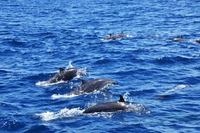 运气来了,挡也挡不住,本来没有预定去“追海豚”的行程,不过在去布纳肯潜水点的途中,遇到了一波海豚,教练说这条路线本来是没有海豚的,可能是因为前几天的洪水或者是海豚跟船跟错了,走失了的一波,被我们幸运的遇到~~