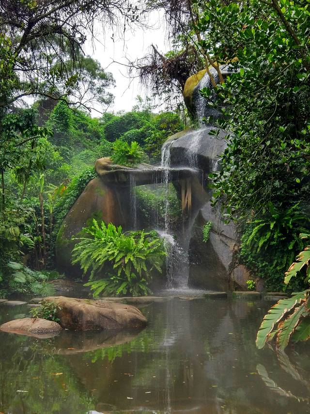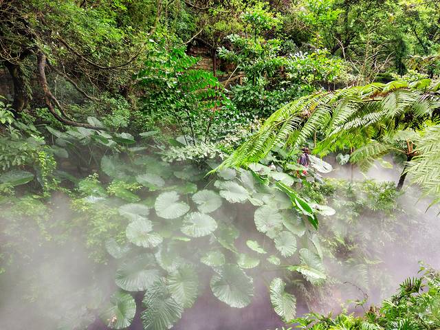 热带雨林区,大树上寄生的花草打造出空中花园的效果。远远望去,那些迷离的喷雾幻化成水墨画中的雾化之笔,如诗、如梦、如画。