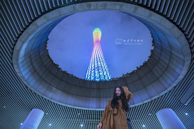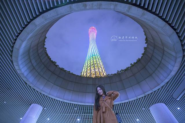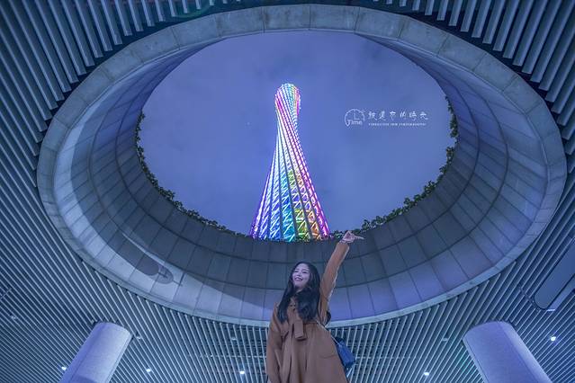 换个没有人角度仰视小蛮腰,五颜六色的广州塔在蓝色的夜的映衬下显得分外妖娆,宛若一位妙龄少女,虽不能登塔一览珠江夜色,但总要有这样不一样发现生活美的角度。