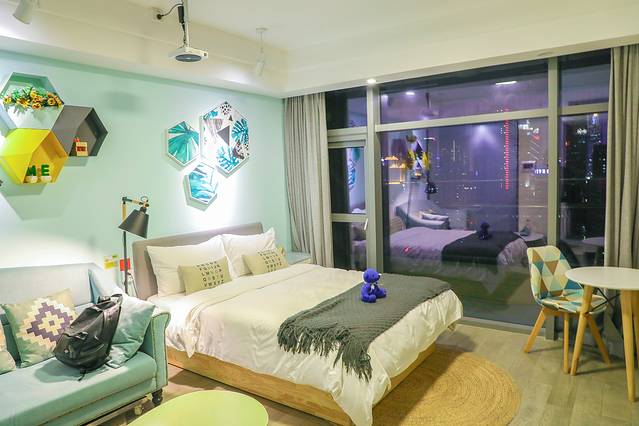 房间比较的小清新,好的设计和色彩搭配让人眼前一亮,瞬间将舟车劳顿抛在脑后,广州的冬季虽说不是很冷,但屋子里真的是很暖和,大大的落地窗加上楼层比较的高,视野开阔阳光洒在房间里想想都觉得美好。
