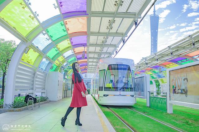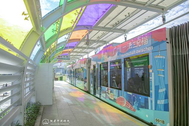 广州海珠有轨电车被誉为最美7.7公里,从APM线广州塔站出站A出口后就能看到这五彩斑斓的电车车站,从广州塔-万胜围,票价2元,电车从小蛮腰出发沿着装珠江江畔一路出发,途径两塔、三园、四景,一路可谓风光无限