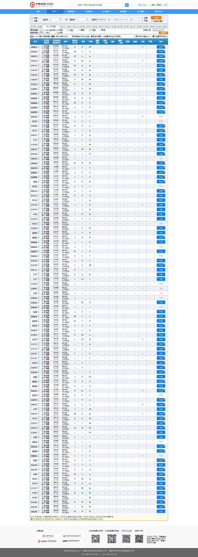 全天44个车次,0:12-23:53均有车次,运行时间8小时左右,硬座价格98元,硬卧价格171元,软卧价格307元,高级软卧505元,大部分车次区间为长沙站-广州站,极少数车次终到站为广州东。