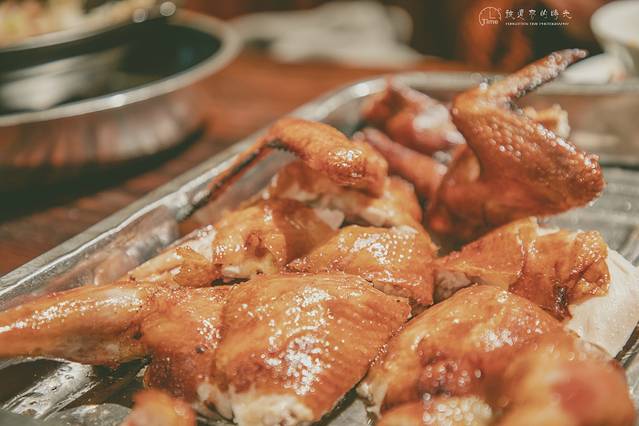 仙庙烧鸡是他家的招牌,一只刚出炉的鸡躺在大铁盘里,简单的劈成两半,让你自己动手丰衣足食,拿起手套撕下鸡腿,味道相当的不错,鸡皮已经烤的香脆,整个鸡已经变成金黄色的,闻起来还有一丝柴火的气息,顺着鸡腿躺下来的鸡油,看着就食欲满满,鸡肉软嫩鸡皮香脆,厚实的鸡肉能带来强烈的满足感,鸡应该是提前腌制过的,但又没有很多调味料,吃到嘴里还是最本质鸡肉的味道。