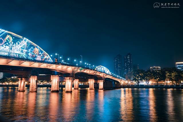 夜游者说:夜色是戒不掉的瘾。海珠桥广州市第一座跨越珠江的大桥海珠桥,是广州珠江上靓丽的风景线,夜晚在灯光的照射下,好似金光闪闪,绚丽迷人。