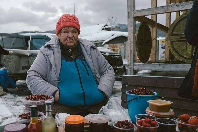 在一座小村的村口停车吃饭,餐厅里温暖干净,饭菜也颇为可口,从沿途渔村中买回薰好的Omul鱼干,味道鲜美,散发着淡淡的木香。饭后买了村民自制的各种梅子做成的果酱与糖果,口味意外。