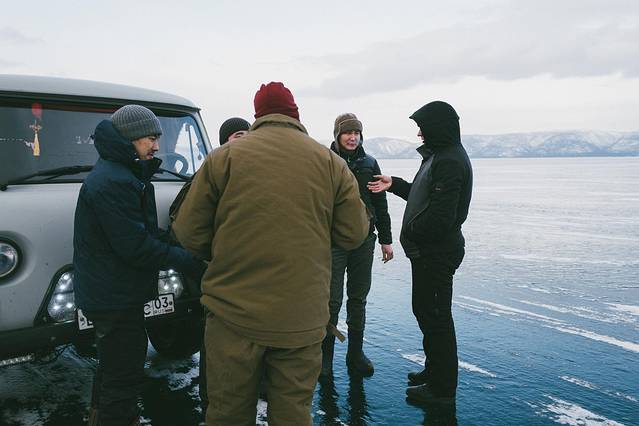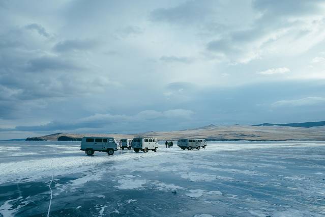 我问红阳,今日的目的地在哪。他说,去利镇, 利斯特维扬卡 。那是一个湖边小镇,位于 贝加尔湖 与安加拉河的交汇处。秋季的时候漫山五彩的颜色,非常漂亮。而现在,湖面封冻,一望无际,有蓝冰,有夕阳,尽是属于冬季的美。他的声音清脆,总能将对事物的描述注入吸引力。