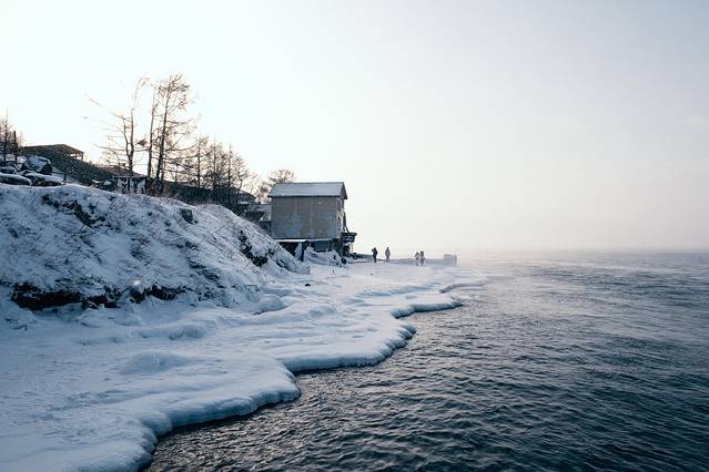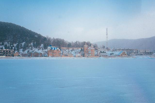 沿着 盘山 公路穿出高耸的森林,视线变得开朗宽阔。火车沿着 贝加尔湖 的南岸在铁路上奔行,湖上没有闪烁的冰面,尽是茫茫的一片白色。穿过城镇,鲜有游客的身影,当地人不紧不慢,过着自己的生活。
