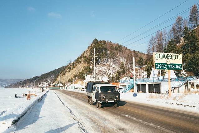 沿着安加拉河岸的公路一直行驶,景色在眼前不断变换。今年的冬季并不算冷,气温在零下十度左右徘徊,以至于很长一段的河面无法封冻。
