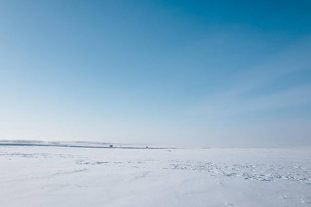 车队行至目的地,在一处封冻的厉害的码头边停下。码头被冰与雪覆盖,只能凭借模糊的轮廓来想象原本的模样。我仅有对大雪的记忆来自2015年的 乌鲁木齐 ,那年冬天,号称几十年未遇的大雪,积雪没过膝盖。然而在西伯利亚的寒冬中,深厚的积雪只是再普通不过的日常。