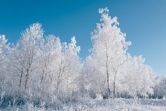 风景沿着眼前的直路无尽无止地绵延开去。成片的白桦林与松树、杉树,由远及近,不知不觉,已将我们环绕。面对冬景的冷峻,我却意外地幻想起了秋日,想必这里又会是一番洒脱优雅的光景,路两旁牛羊悠闲,骏马奔驰,荡漾着金色的秋风。