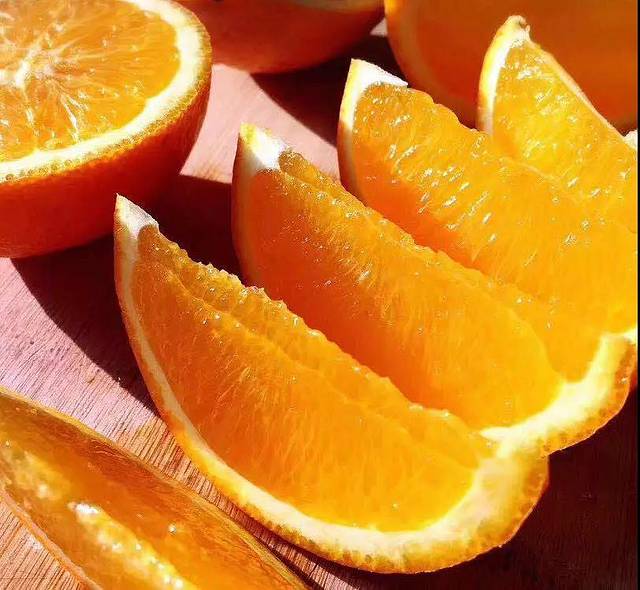 高甜低酸,糖酸比14:1,符合美国USDA分级标准的A类品质,高于国内普通脐橙甜度,橙汁粘在手上都会粘粘的。