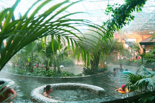 上午十点左右到达,办理完入住后我们回房间休息,下午我们去这里的温泉感受了一下,非常的不错,有一种到了西双版纳的感觉。里面全都是热带植物,环境优美。里面有各类汤池几十余个,功效各不相同,有红酒浴、花瓣浴、人参浴等等,在西侧还有一个非常大的游泳池,有喜欢的朋友还可以去体验一下。