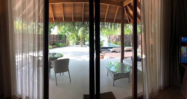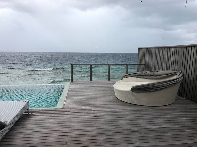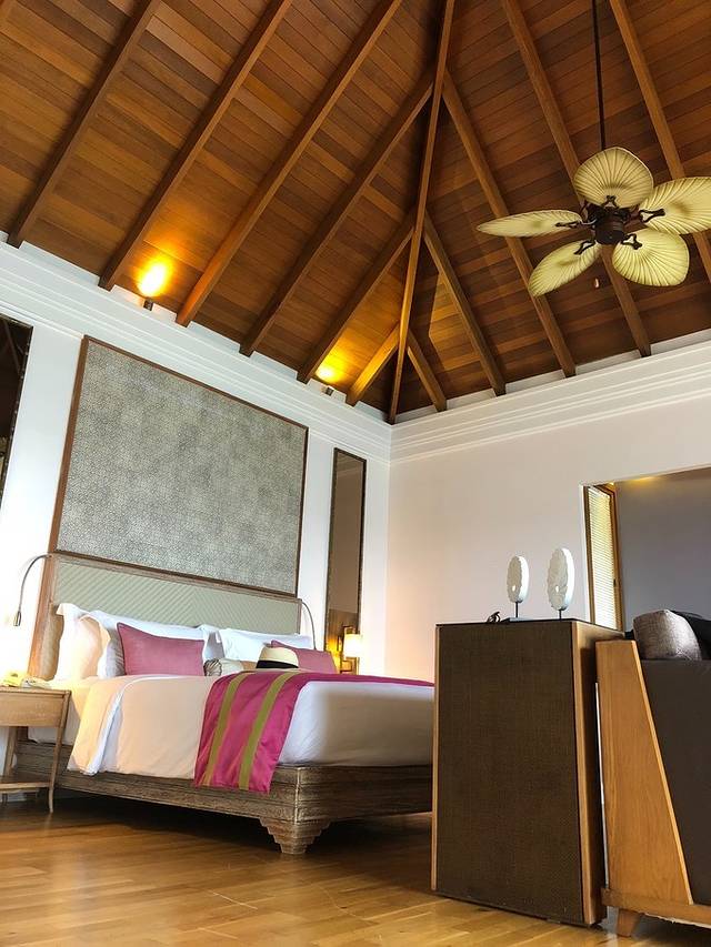 房间。四天分别为两晚豪 华沙 屋 泳池和海洋别墅 泳池,原本确认房型时酒店告诉我们沙屋泳池是在后面院子里的,实际到了以后管家告诉我们这套沙屋最近刚刚翻新过,泳池是全新的并且朝向大海。从落地窗前望出去,泳池连着大海,真的是美极了。