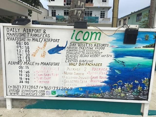 从机场岛去 马累 需要坐轮渡,船资每人1刀。建议在机场的马代银行换些本地货币,用不完的可以免费换回去。携带美金也可以消费和购买船票,略微贵一点点。甚至在有些码头买船票,你付美金对方仍会用本地币给你找零,或者有些超市不接受10刀以下的美金。这些时候如果有本地货币可能会更方便。对了,如果你要在机场买Sim卡,推荐买15刀的套餐。我们买了20刀的套餐,完全用不完用不完。。。 移动数据仅在7天内有效。银行,手机卡都在机场岛买好再出发,码头也在机场岛。