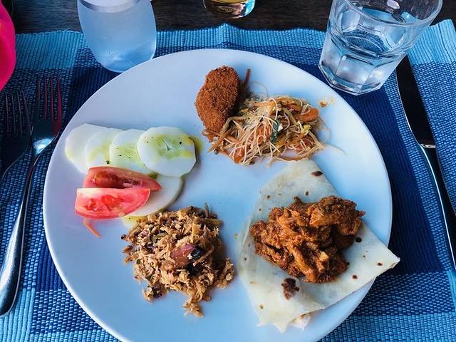 我们入住的是Arena Beach Hotel,看Tripadvisor评价不错,实际就真的不太好。酒店经理态度傲慢,前台服务人员屡屡出错,活动中心的人也不是很负责。最终导致我们错过了去度假岛的水飞,还跟度假岛的工作人员说谎是我们自己误机。更乌龙的是,他们活动中心的人发邮件给我们当时去浮潜的照片,结果邮件里看到的是完全不认识的人。。。不知跟我同行的那些 意大利 人作何感想,是不是气的鼻子歪掉???居民岛的饮食风味和 马累 差不多。Arena hotel的餐厅算是不错的,可以看海景、价格也不贵。我们除了有两天在别家吃海鲜螃蟹外,基本都在酒店的餐厅用餐。
