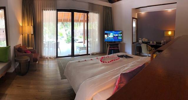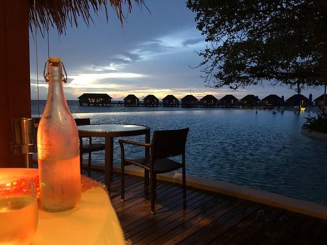 选好岛就选好了酒店,但还要选房型。酒店的套餐一般都是4晚,两沙两水。至于有些攻略说可以备注房号,选择看日落或日出的房间。个人觉得可有可无,但离餐厅或者酒吧近一点倒是比较重要