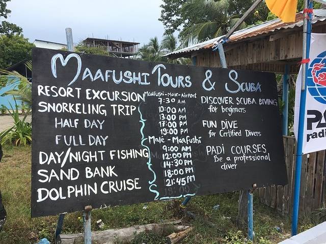 马富士(Maafushi),从 马累 乘公共轮渡需要约一个半小时,船资每人2刀。这是比较大的一个居民岛,岛上一头甚至有一个监狱。以前这个岛上多是欧美游客来玩,住宿潜水活动都很经济实惠。现在 亚洲 人和 意大利 人很多,虽然酒店服务生会说 中国 人最多而且英文不好,但我感觉他们是分不清哪些是 日本 韩国 的。。。 至少在我入住的酒店三分之一 中国 人,三分之一日韩,三分之一 欧洲 的。