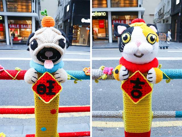 在铜锣湾的通道游走的时候,旁边因新年装饰上的可爱“狗头”、“猪头”,样子特别喜庆和趣致~