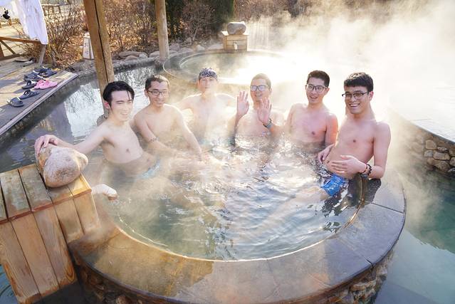 进入温泉之后,除了刚刚换好衣服之后那一刻觉得寒冷,当我们迈入温泉池里面后,完全不会有丝毫的寒冷,反而是一种自下而上的暖意,终于感受到北方人民那种悠闲的生活了。