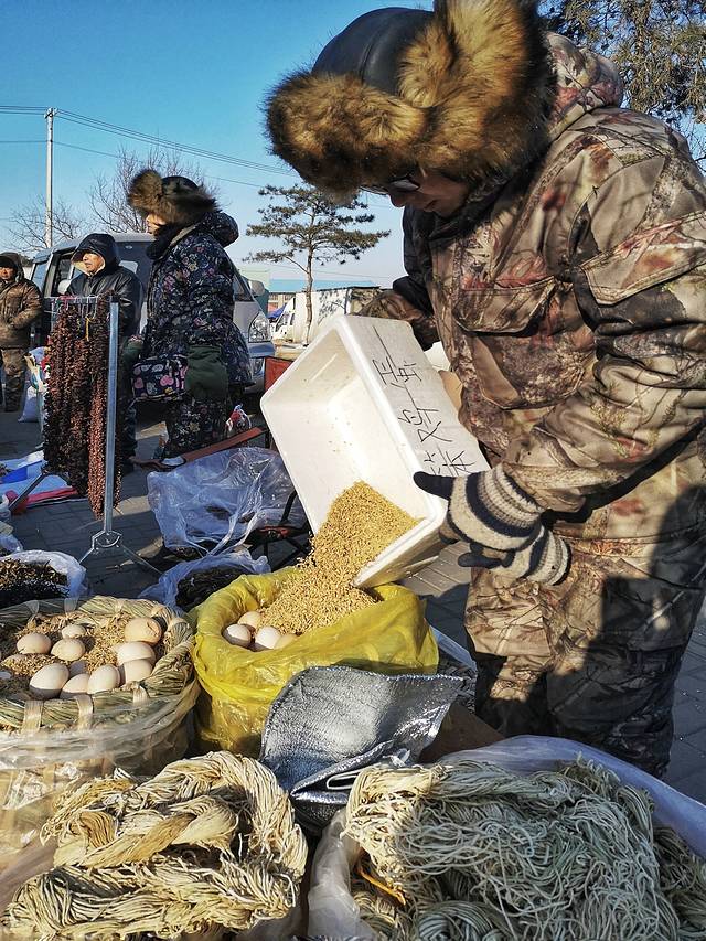市集上的商品可谓是琳琅满目,蔬菜瓜果,吃的喝的用的,全都有。而对于我来说,最让我开眼的还是眼前的这一袋袋蝗虫和土蚂蚱,这个东西也能吃?真的是刷新了我对于吃的认知,而东北人民买东西跟南方人可不一样,他们都是一袋袋的买,显得非常大气和阔绰。