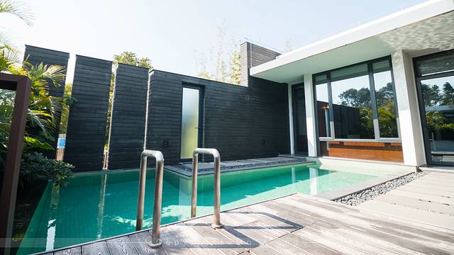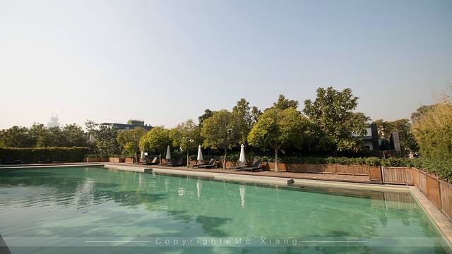 通过客房的玻璃门就走到了套房的自由区域,这里是房间的私人泳池,不同房型的泳池大小也不同,而且泳池是在墙壁的遮挡下,所以这也不用担心个人的隐私问题。
