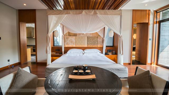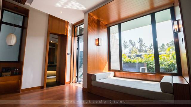 蓝楹湾度假酒店共有24间东南亚海岛风情亲水套房,与蓝汐精品酒店的年轻时尚元素,不同的是这里更加注重顾客的私密性。客房外有着非常茂密的植物和树群,客房内的风格也和很多海岛酒店的风格很相似,宽敞明亮的环境,低调的橡木黄色木地板和其他白色的软件设施搭配格外舒适。而且每个套房内都有自由开放区域,给人营造出一种出行自由度假式的感觉。