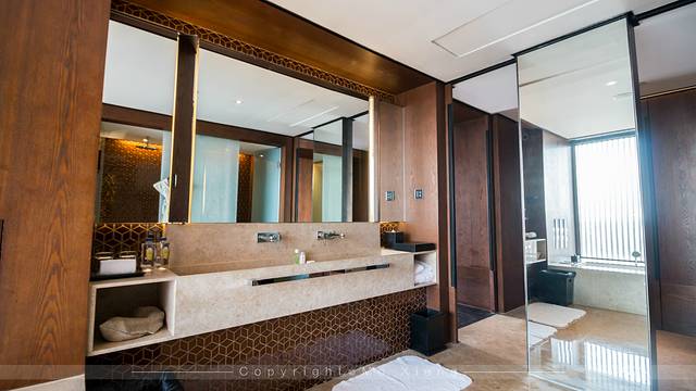 其实入住酒店的时候我不但注重酒店整体及客房的舒适度,洗手间的宽敞度也是非常重要的。半开放式的卫浴空间,注重了使用的功能性时,也增加了隐私及美观度。沐浴用品的分离设计让在洗手间的各个区域都能随手拿到,而独立的浴缸和淋浴房让有不同使用方式的住客也有了多种选择,而且酒店配备了高品质的洗漱用品。
