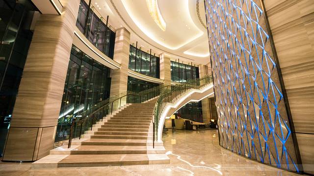 酒店前台的背景设计也是独具匠心,与大堂凤凰羽翼为设计灵感的水晶灯相辉映,前台墙壁上的背景灯更像似变幻的羽毛。JW万豪的服务也是出了名的好,不论是办理入住或离店手续,高效率及微笑面孔是留给我最深的印象。而且从进入酒店的时候,礼宾部的工作人员都会热情的指引,办理好入住手续,他们会将住客送至到电梯口。