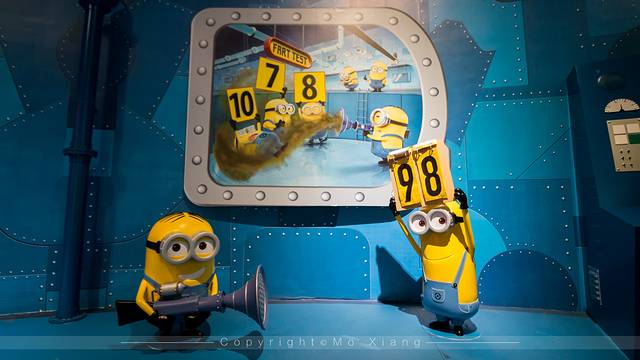 当得知神偷奶爸大视野全球首展在12月8日深圳欢乐海岸时,对于十足动画迷的我来说终于可以近身与它相见了,这也是我个人为数不多参观游玩过以动画为主题的展馆。整个展览馆分为7个展区,设置了超多可互动的小游戏,进入一层展馆前首先会观看三分钟的小短片,是《神偷奶爸》3部的精彩画面剪辑,让人瞬间找回了曾经那段废寝忘食观看的回忆。