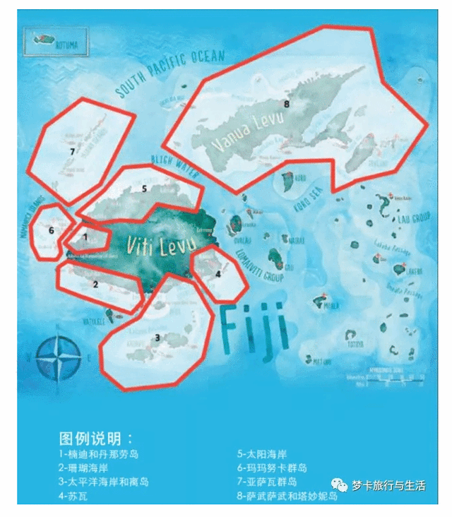 建议路线:丹娜努码头—— 玛洛洛岛 ——Monuriki岛 ——玛娜岛——金银岛——南太平洋岛——丹娜努码头 ,具体看下图。然后也可以根据这个图自己安排更长时间的航线图。