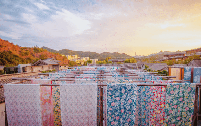 酒坊里可以参观古老的粮酒工艺,酿酒器具也开放参观,要是感兴趣还可以现场买一些带回去。酒坊东边是有名的永顺染坊,这里采用古代那种大染缸侵染的方式来染布。进去之后可以看到很多巨幅的花布悬挂起来晾干,一瞬间感觉自己置身某个古装剧的场景,所以一定不要放过这个拍摄大片的好机会。染坊的二层还有DIY体验区,可以自己手动上色和制作,挺有趣的。