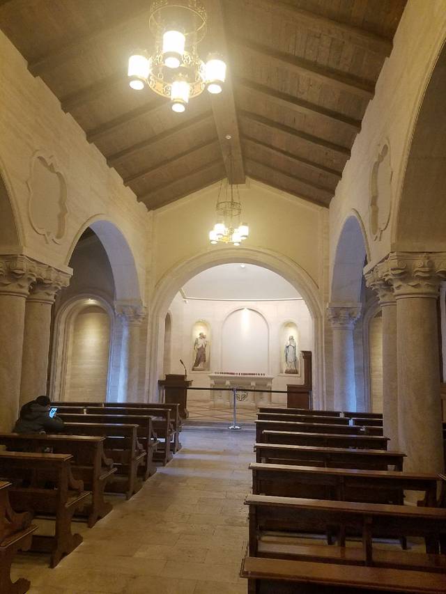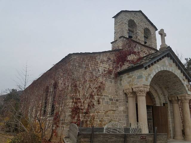 山顶教堂位于镇子里的小山上,爬20分钟左右的台阶就能到。教堂不是很大,是座平层建筑,外观是灰色的石头房,风格也比较偏素雅。
