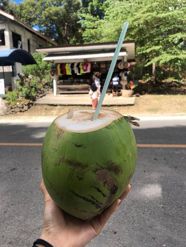 第二站:大榕树,鱼疗!这个景点应该是中国人去开发的吧,太商业了,一点儿也不好玩,上个洗手间也要收费,竟然还可以用微信支付,妥妥的中国付款方式!我们只是看看,走走。然后买了几个椰子,这个时间点这个温度就需要来一个。整个锡岛都是椰子林,我们住的酒店就有很多,店家还特地交代小心路过椰子林的时候被椰子砸中!