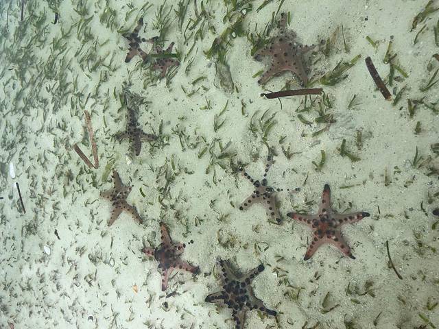 早餐后,四美换上美丽的裙子,浣熊哥哥换上了潜水服,一路狂奔到海里。美女下海为了拍照,美男是浮潜来的。美女们看了好多的海胆和海星,随手拿一块石头里面全是海胆,忘记拍照片了。