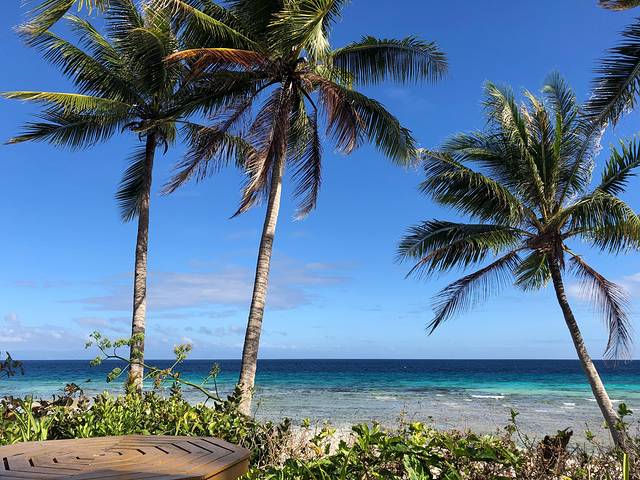 昨晚睡得早,今天7.30半就起床了,浣熊哥哥跑到房间的阳台,告诉我这里可以看到整个海滩。快速洗漱完毕下楼,刚走出门口,眼前的美景真的真的真的让你忘记所有的一切。那里有想象中五颜六色的海,一层叠着一层,由浅至深,海水那么蓝,有的比翡翠浅有的比蓝宝石还深。