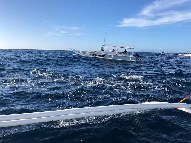 第二天一早,6.30出发前往巴里卡萨岛。带着酒店帮忙准备的早餐,背着一包鼓鼓的行李,我们欢快的出海追海豚了。出发前,一日游的导游有跟我们说过,海豚去中国过年了,一个礼拜都没有出现,让我们别太多期待!一路上伴随着朝阳,哼着小歌开心驾着船追着海豚(就是螃蟹船的声音真的是太吵闹 了)。非常幸运地我们,一来便看到了,海豚就在我们的船边,可惜我反应不过来,很近的时候都没有拍到。还是浣熊哥哥速度快,离得远远地拍照呢!