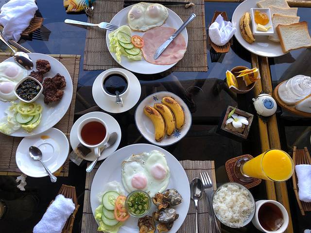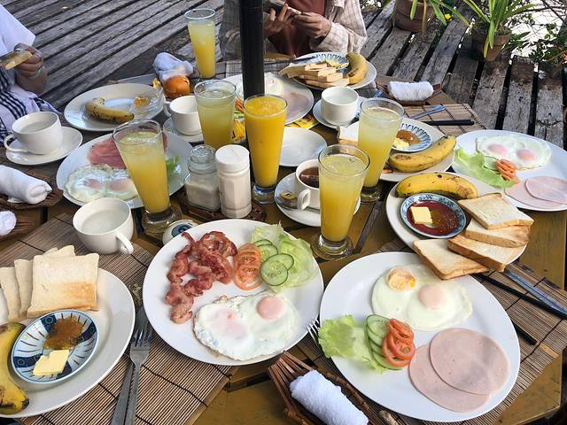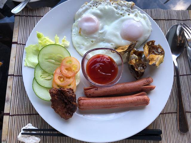 我们决定边吃早餐边欣赏美景,选了一个最合适看海的餐桌。在浣熊哥哥的翻译下,完美的点了一桌子的早餐,有美式的有欧式的有中式的也有菲律宾的。。。。(未来两天的早餐都是如此的美味)