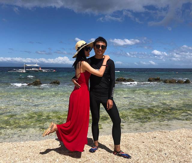 菲律宾酒店的早餐都是非常丰盛美味的,因为行程的原因,我们只有今天早上可以在酒店细细品尝。8.30分潜店的司机和教练过来接我们前往店里参加理论培训等等!大致的体验深潜理论知识培训好了,换上专业的潜水服,怕冷的女生穿了两套,感觉路都走不了,在陆地的时候真的是很不舒服。换好装备前往泳池适应下,整体下来,我们四个人的表现都不错,女生选择了比较简单的全面罩呼吸,浣熊哥哥选择比较麻烦的呼吸管,其他的就是各自去体会了。