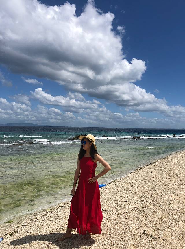 浮潜后,向导已经跟船家备好午饭(上午十点多的午饭)。我们裹着浴巾去换衣服(船家的用简易的东西围起来的一个小空间),这个岛上是没有淡水的,(我们带来好几瓶的大矿泉水)我们也无法冲洗,有个可以上厕所的地方就已经很好了。为了下一站的处女岛能拍上美美的照片(浮潜的时候,都是素颜),我们换了衣服,吃了午饭,还花了个淡妆。一切准备就绪的,时间已经不早了,需要前往退潮才能看到的处女岛。(大中午的太阳真的非常毒辣,浣熊哥哥就是没有用浴巾包起来,被晒成当地的肤色,到现在还是没有恢复,应该也是无法恢复了,厦门的夏天也到了呀)。