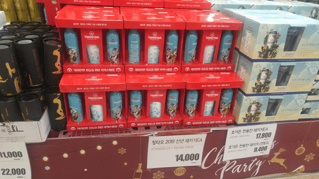 哇!竟然看到我国著名啤酒品牌青岛!在韩国人气好像蛮高的~这个礼品套装好像是为了2019年新年而出的纪念款~