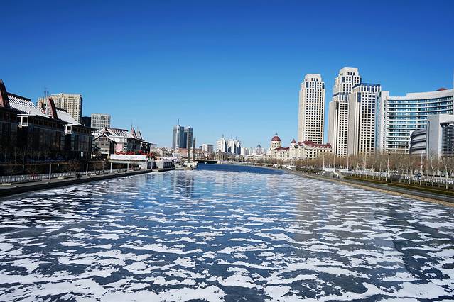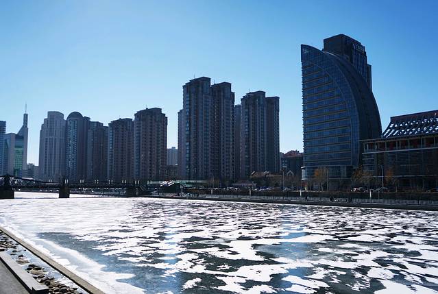 出门走几步就是海河。沿着河边走走,阳光,蓝天,碎冰,海鸥,好心情plus。😌