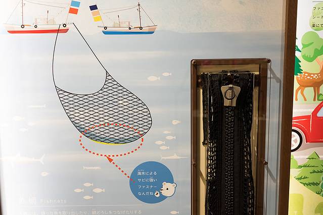 2层是介绍拉链的构造和历史的展示空间。包括航天服及明石海峡大桥的排水沟中采用的水气密封拉链、消防服及火箭中不可或缺的、使用阻燃线的防火拉链等高规格的拉链及其出人意料的用途。