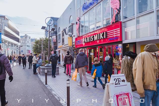 从表参道的神宫前路口附近,往“喜客披萨”方向转弯,就能看到步行街“猫街”。悠闲又舒适的猫街在新年的最后一天居然还有不少营业的商家,热火朝天的打折气氛也是吸引了许多人抓紧时间购物,让这里慵懒的气氛一下子变得快速热烈起来,只有血拼过后拎着战利品,和烤地瓜的大叔买块甜甜的地瓜,才能感受到猫街原有的气氛吧!