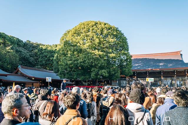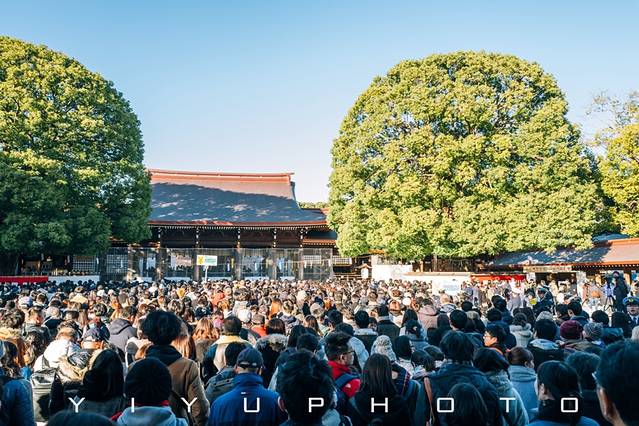 人山人海也不拥挤,排队到最前面行礼许愿扔硬币,融入其中感受新年气氛。平时空空荡荡的明治神宫里,偌大的道路满满都是人,大家一边聊天一边向前移动,如果你此时后悔了,真的没有办法回头了哈哈。