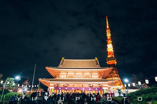增上寺因为有铁塔加持,游客格外的多。晚上十点左右,这里已经人潮拥挤了,据说这个时间的涩谷,更是水泄不通。也许是为了减少聚集的人群,跨年只有敲钟和放飞气球,没有铁塔倒数了,也许是因为马上要换年号了所以没什么比较隆重的庆祝,不过除了听钟声,我相信赶来凑热闹的当地人有一大半的目的都在热腾腾的小吃上~~