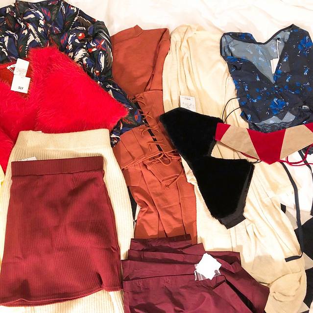 这张是SLY的福袋内容,一共十一件,物超所值,腰带和带腰带的裙子没法穿,带毛的小背心好看又时髦但是real不适合我,其他的都蛮基本款的,简单好搭,感觉三折是有的,赚到了!没有大衣没有鞋子。买之前使劲摸避开了一个帆布包的福袋,六百多rmb买这么多也是开心。