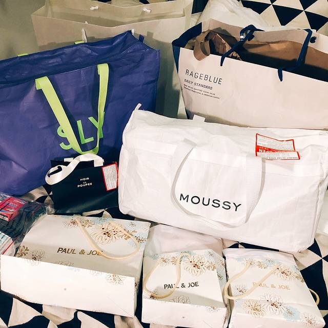下图是大集合,买了两个衣服的福袋,后面是单独买的衣服品牌,Rageblue是 日本 简单好穿便宜的男装品牌,适合不追求潮牌的人。Paul&Joe的杂物福袋有点鸡肋,虽然手机壳很美但是不是我手机型号也是很气啊!但粉底液福袋就很值了,相当于送了一堆小样和一双价值1500左右的可爱袜子。