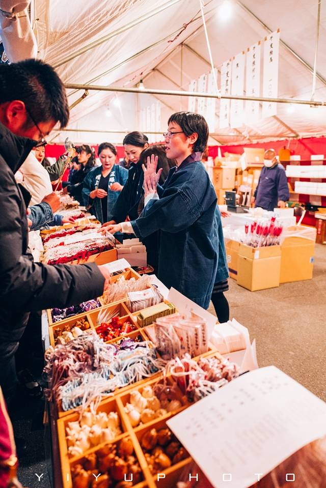 日本 人习惯在12.31号夜里或者是1号1号早上去寺庙祈福,请御守,写绘马,还有吃小吃。看到有年轻人把香炉里的烟气往头上撩,据说这样会变得聪明,不妨试一试吧!