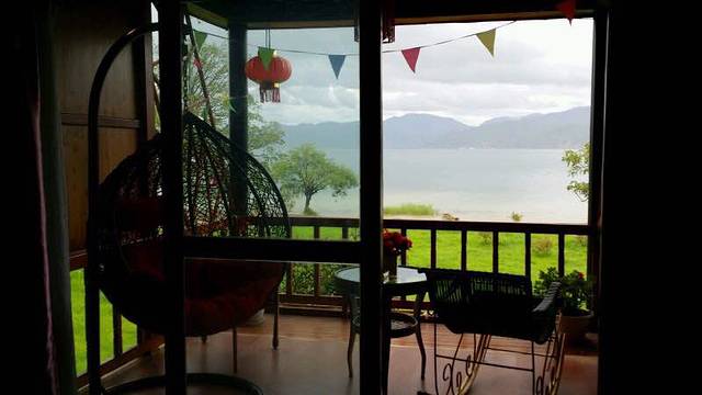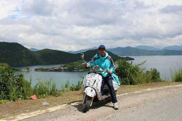 早上起来一直在下雨,在客栈阳台发发呆,一直等雨停…到了快11点的时候天还是一直毛毛细雨,终于按耐不住出去租了一辆摩托车,冒雨环湖去。